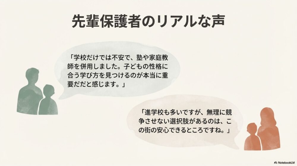 - 「進学校も多いが、無理に競争させない選択肢があるのは安心」