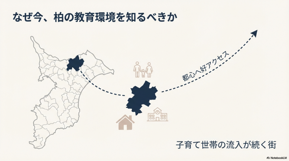 千葉県柏市は、県内でも人口規模が大きく、都心へのアクセスの良さから子育て世帯の流入が続いている地域です。小中学校の数が多く、学区によって学校規模や学習環境に差が出やすい一方で、高校進学では市内外の公立高校を含めた幅広い選択肢があります。