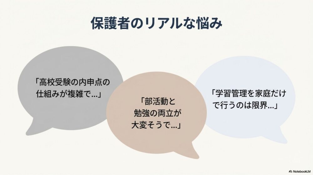 共働き家庭では、学習管理を家庭だけで行うことが難しく、塾や家庭教師にサポートを求めるケースも少なくありません。特に中学生以降は、学校ごとの定期テスト対策や提出物管理を重視する声が目立ちます。