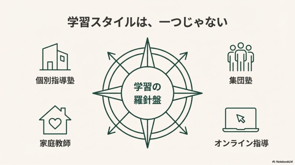 境町では「塾一択」というよりも、学年や学力状況に応じて、家庭教師やオンライン指導を併用するケースが見られるのが特徴です。