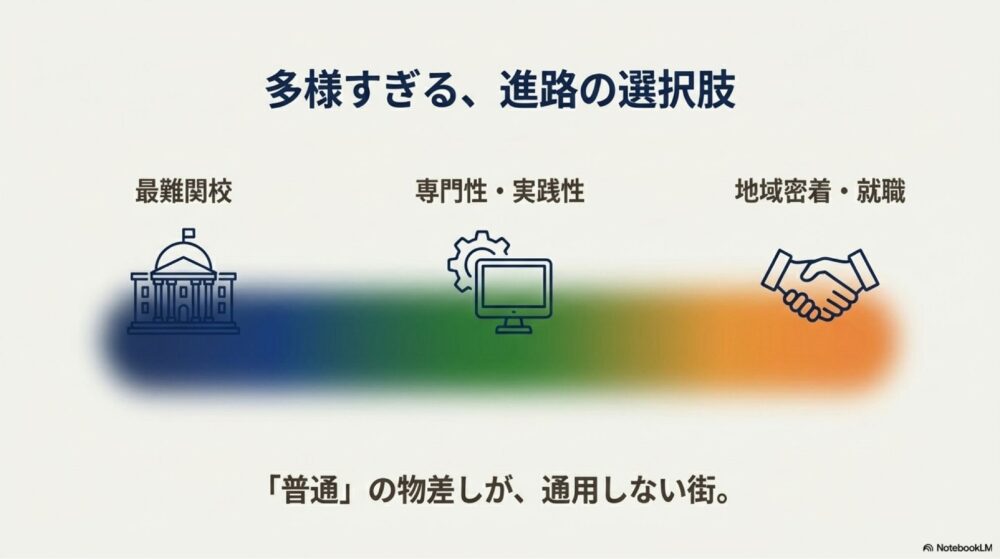 最難関校を目指す層から、専門性や実践性を重視する層まで幅広く、公立高校の選択肢も多様です。