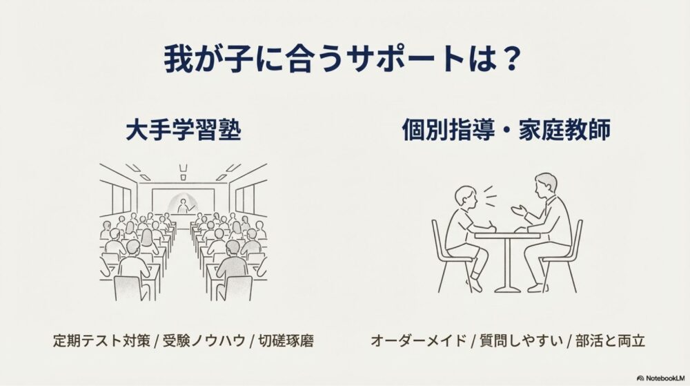 - 「集団塾より個別・家庭教師が合う子も多い」