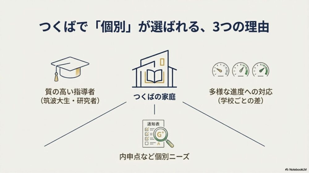 つくば市は選択肢の幅が広い分、進路の方向性を早めに整理することが重要になりやすい地域です。