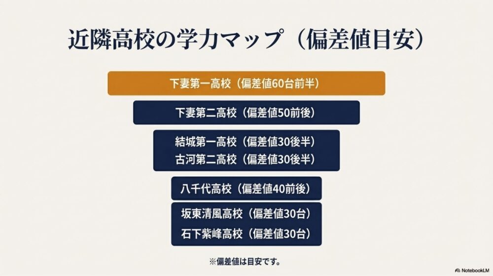 下妻第二高校、結城第一高校などが現実的な選択肢