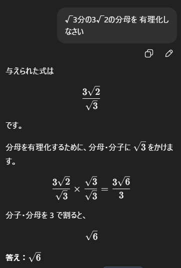 AI は、手順、計算、答えという順番で、とても丁寧に回答してくれました。